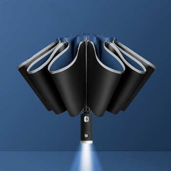 Paraguas invertido compacto a prueba de viento reflectante LED totalmente automático de 10 varillas de diseño clásico al por mayor paraguas todo en uno de 105cm